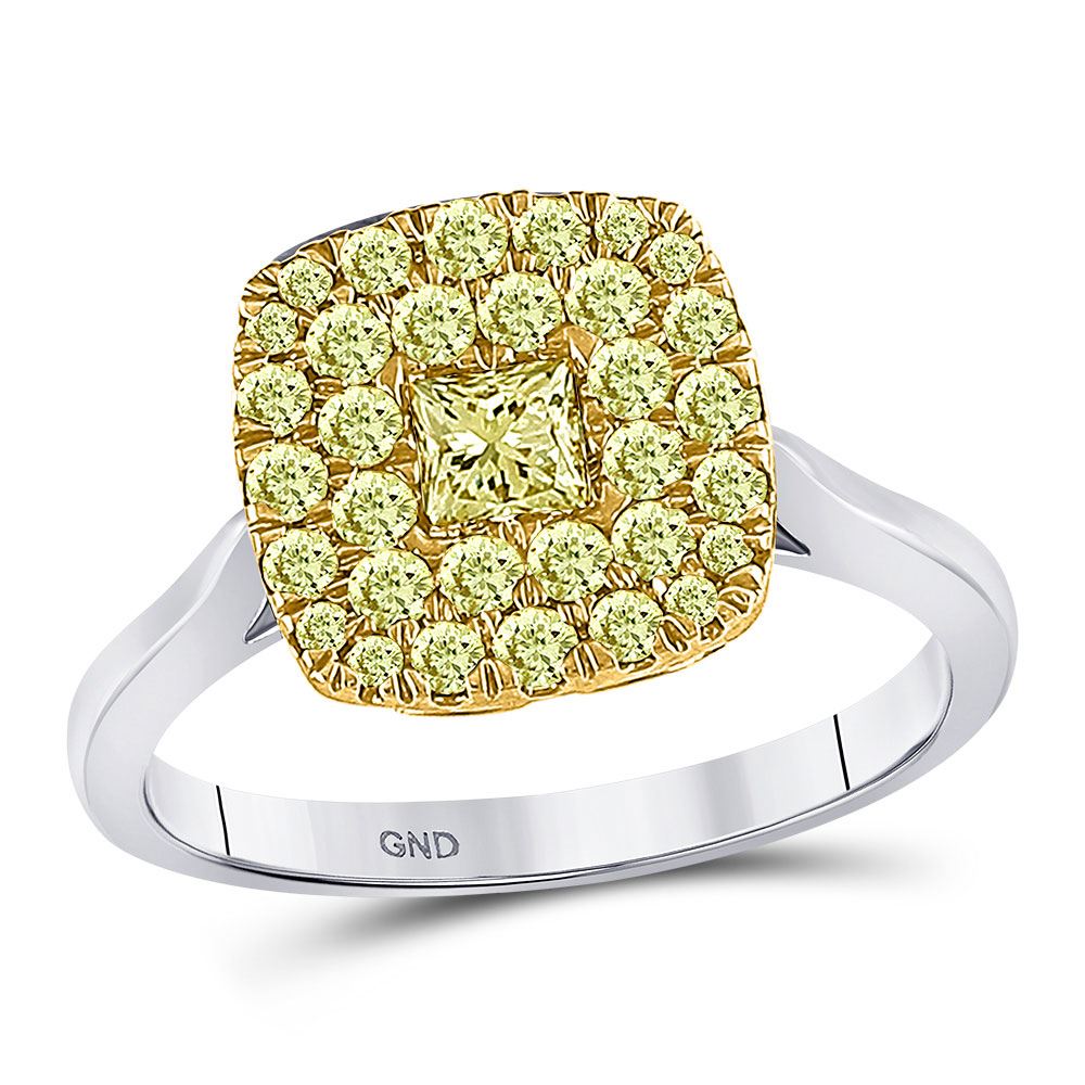 14kt Two-tone Gold Womens Princess Yellow Diamond Solitaire Square Frame Ring 1 Cttw