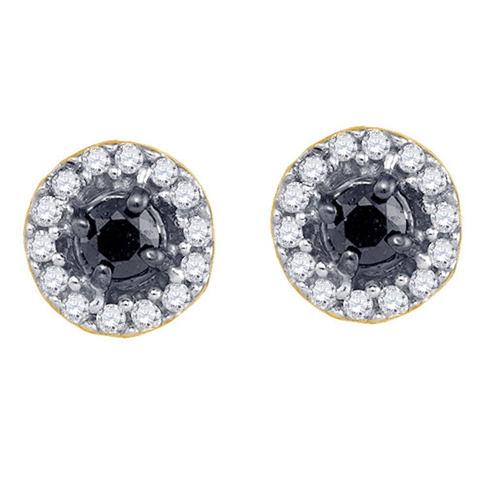 REF-12Y9N ---- Womens Round Black Color Enhanced Diamond Cluster Earrings 1/5 Cttw 10kt Yellow Gold