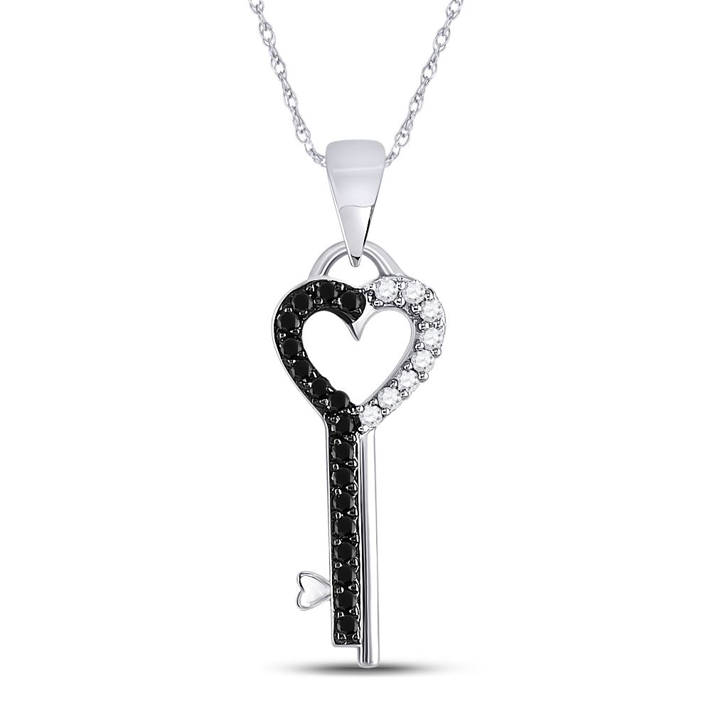 REF-9H5R ---- Womens Round Black Color Enhanced Diamond Key Heart Pendant 1/8 Cttw 10kt White Gold