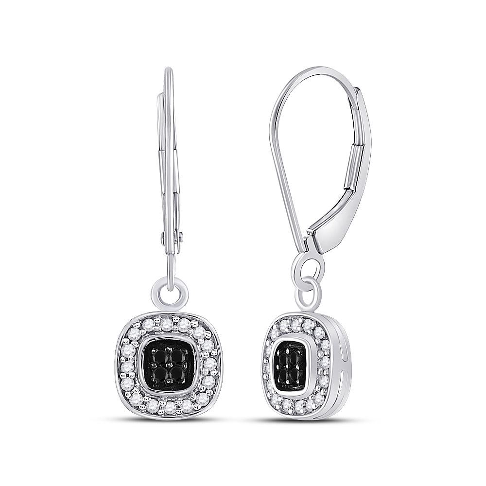 REF-21H5R ---- Womens Round Black Color Enhanced Diamond Square Dangle Earrings 1/4 Cttw 14kt White Gold