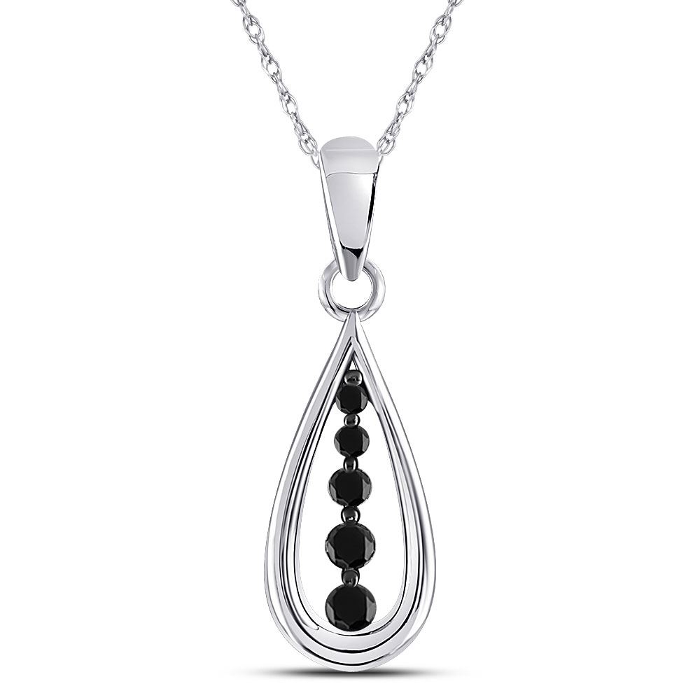 REF-5M5H ---- Womens Round Black Color Enhanced Diamond Teardrop Pendant 1/8 Cttw 10kt White Gold