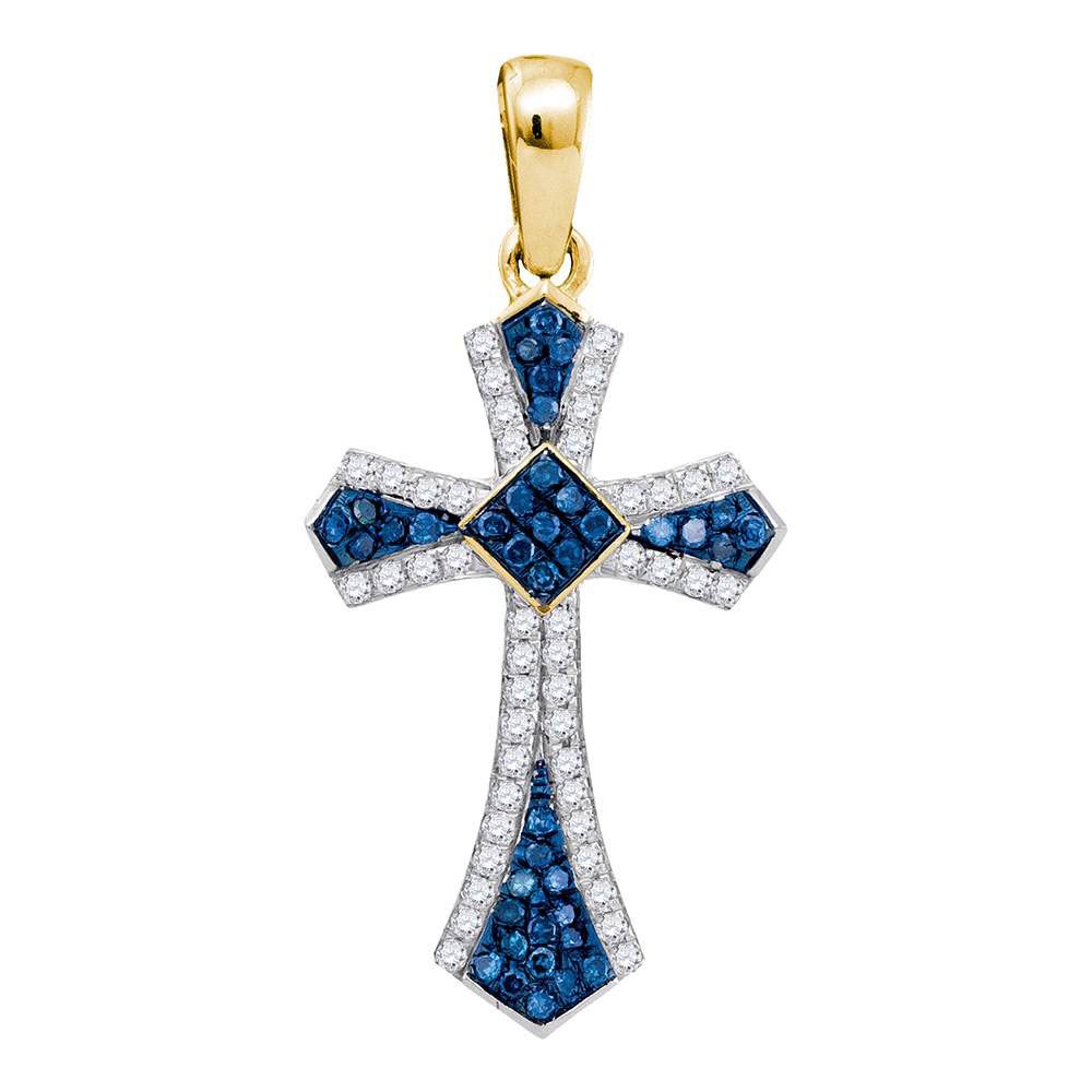 10kt Yellow Gold Womens Round Blue Color Enhanced Diamond Cross Pendant 1/4 CttwItem Number: GND154584Gemstone Details1/4 Carats total weight