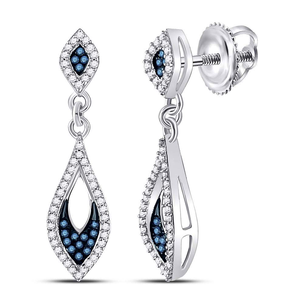 REF-21Y5N ---- Womens Round Blue Color Enhanced Diamond Dangle Earrings 1/3 Cttw 10kt White Gold