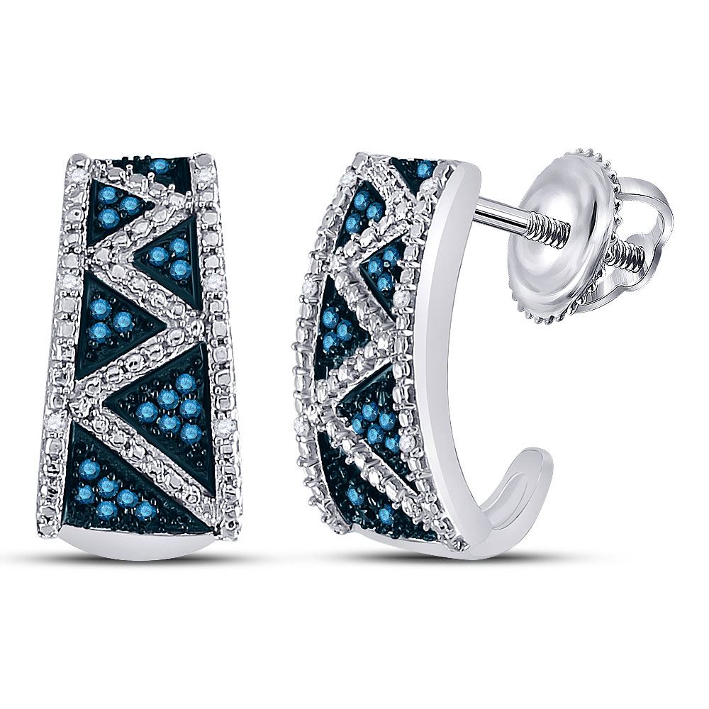 REF-18K5Y ---- Womens Round Blue Color Enhanced Diamond Half J Hoop Earrings 1/10 Cttw 10kt White Gold