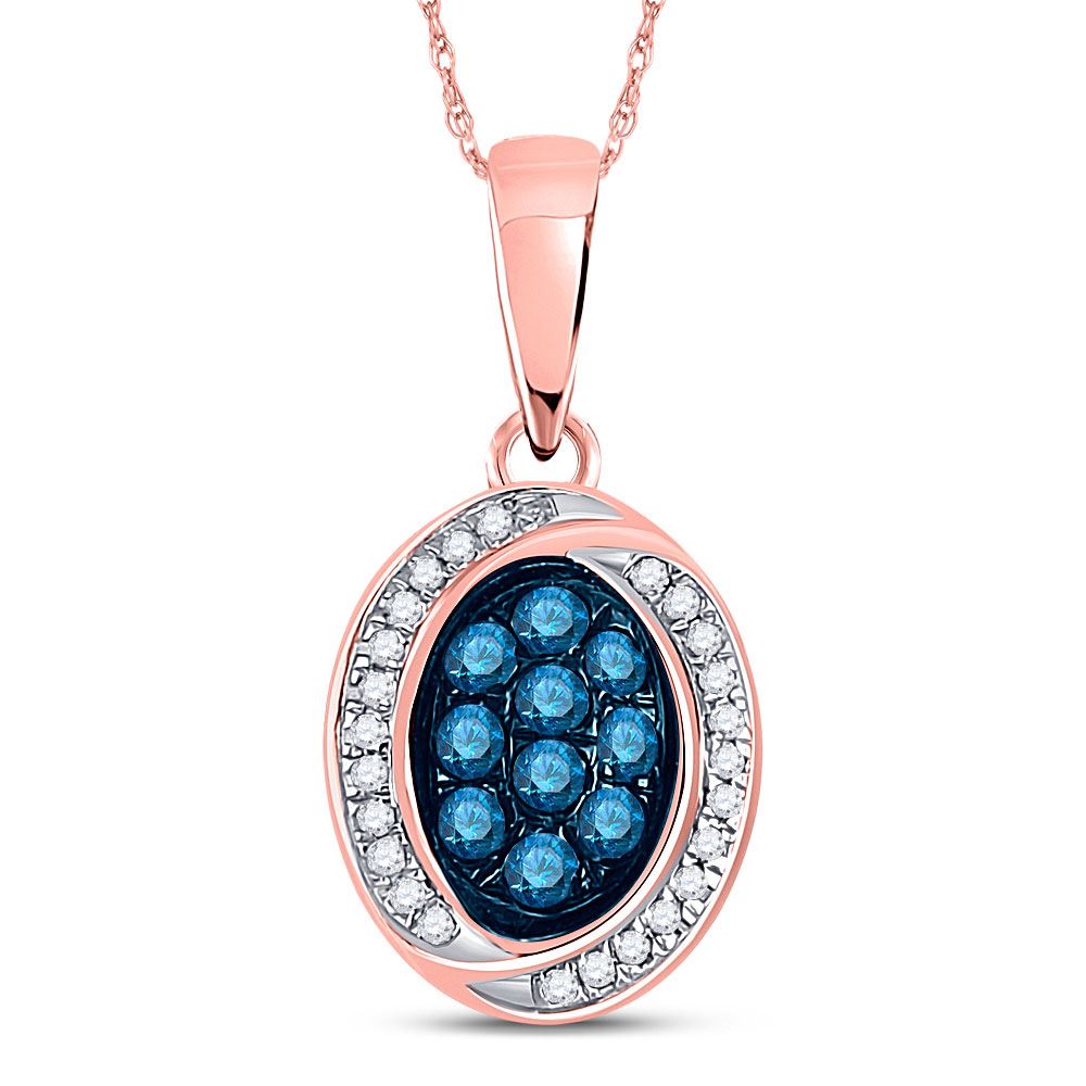 REF-19W9K ---- Womens Round Blue Color Enhanced Diamond Oval Pendant 1/3 Cttw 10kt Rose Gold