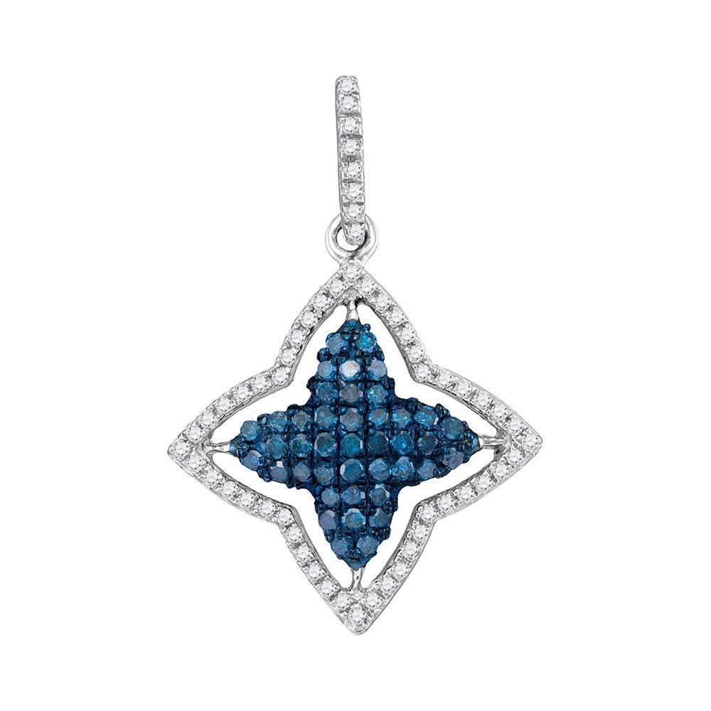 REF-16F9W ---- Womens Round Blue Color Enhanced Diamond Star Frame Pendant 1/2 Cttw 10kt White Gold