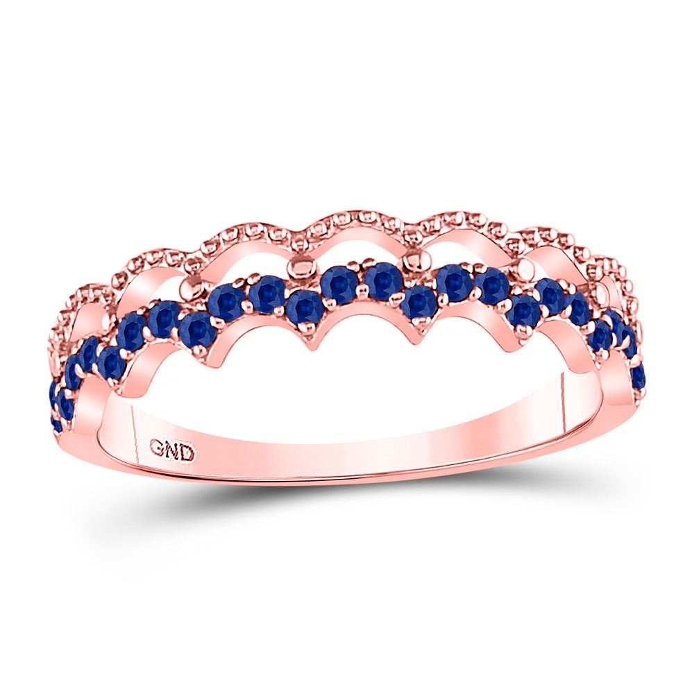 REF-12W9K ---- Womens Round Blue Sapphire Scalloped Stackable Band Ring 1/4 Cttw 10kt Rose Gold
