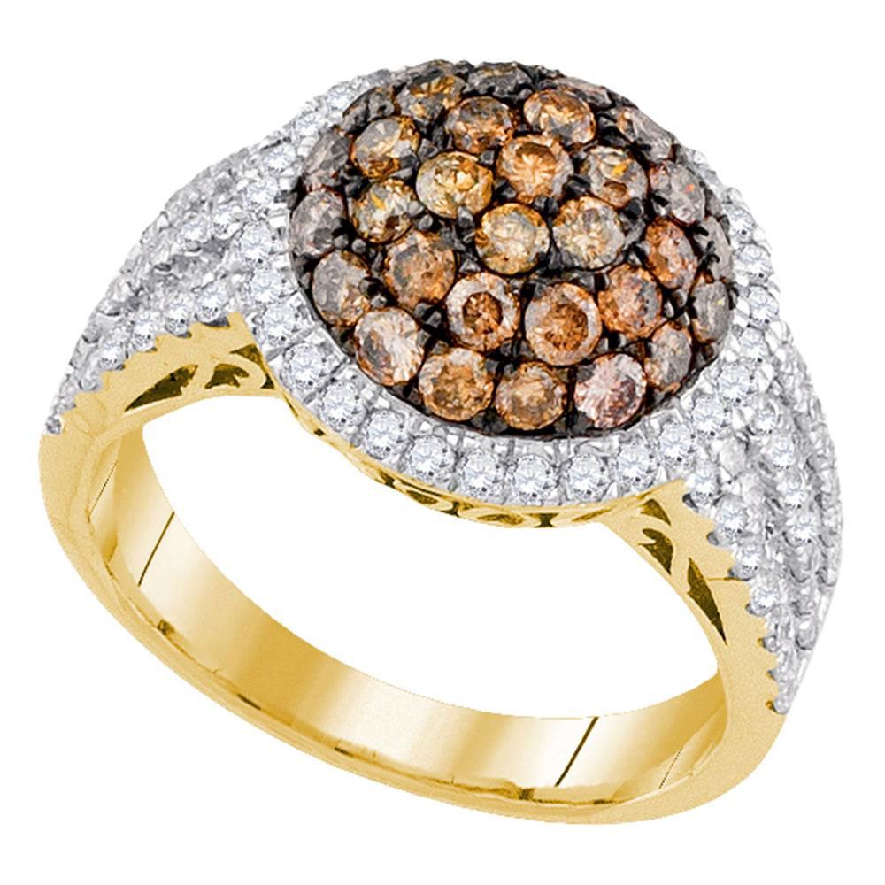 10kt Yellow Gold Womens Round Brown Diamond Circle Cluster Ring 2 CttwItem Number: GND-81718Gemstone Details2 Carats total weight