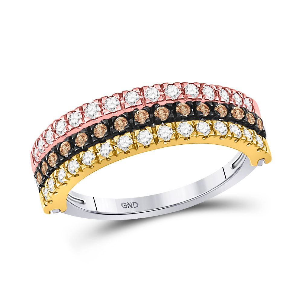 10kt Tri-Tone Gold Womens Round Brown Diamond Convertible Stackable Band Ring 3/4 CttwItem Number: GND1073903Gemstone Details3/4 Carats total weight