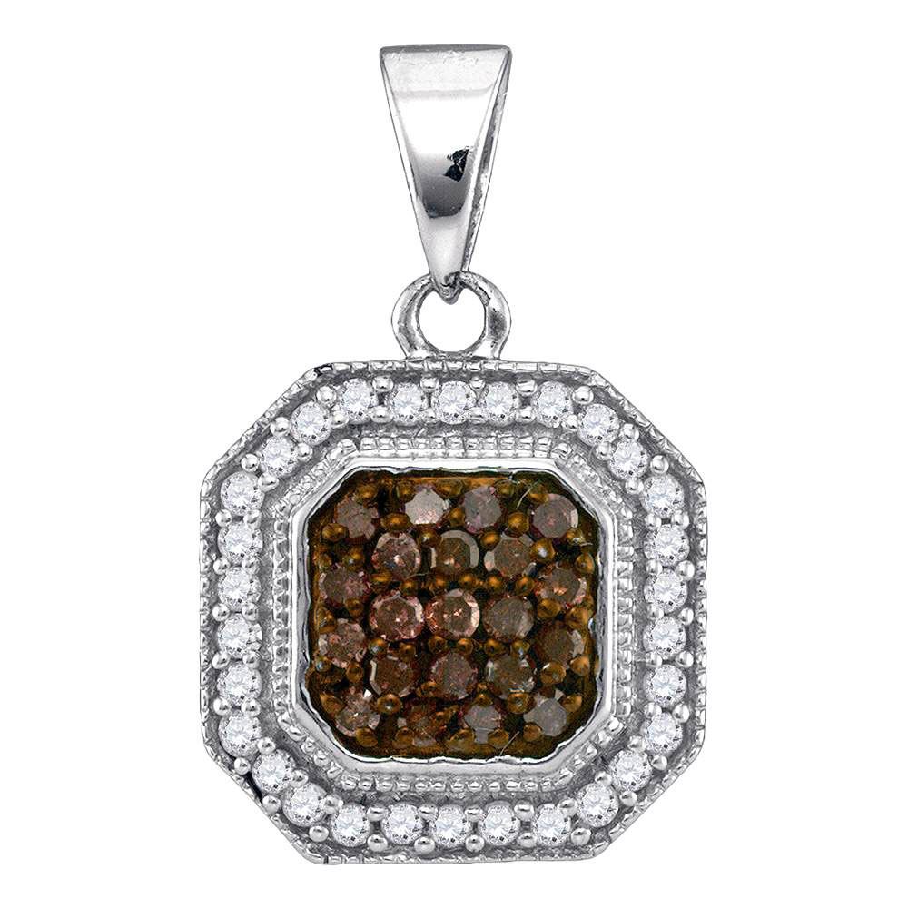 Womens Round Brown Diamond Octagon Cluster Pendant 1/3 Cttw 10kt White Gold - REF-13R9X