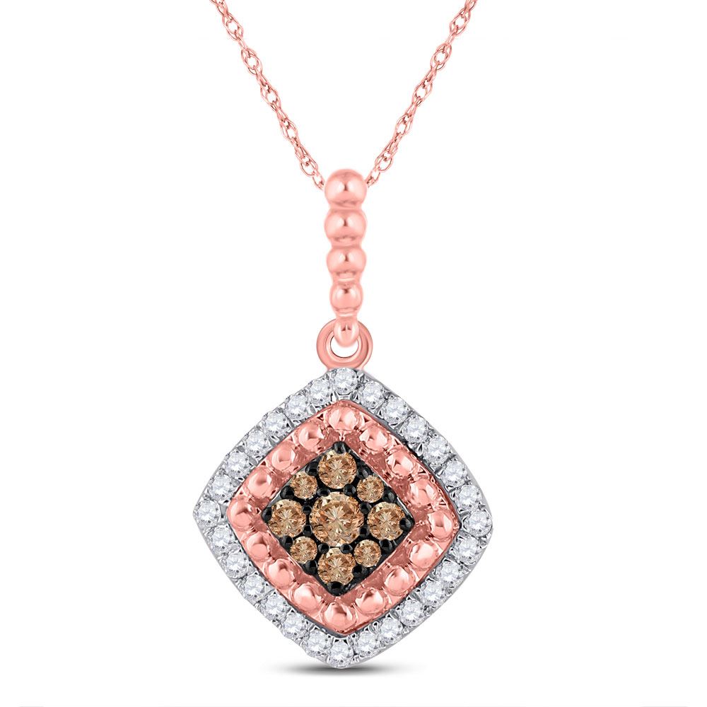 REF-17R5X ---- Womens Round Brown Diamond Offset Square Pendant 1/4 Cttw 10kt Rose Gold