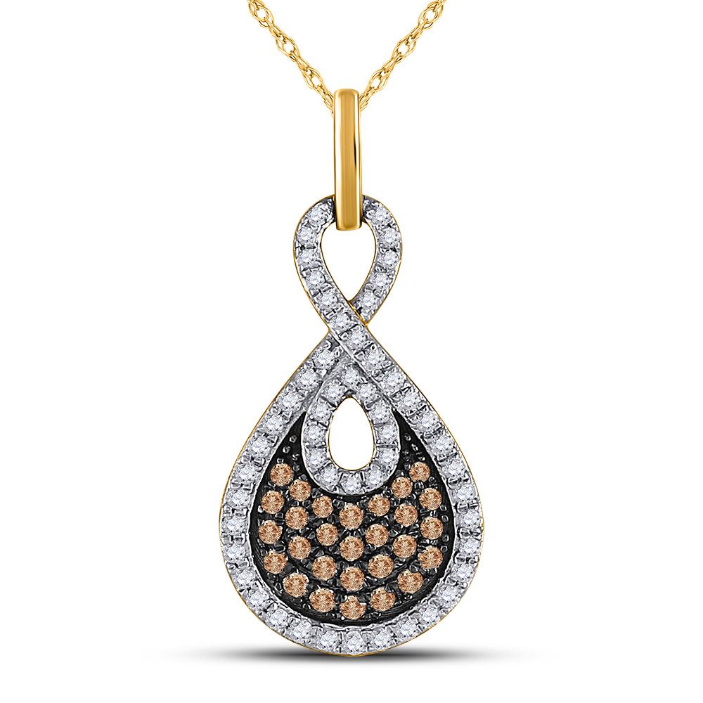 REF-27R9X ---- Womens Round Brown Diamond Teardrop Pendant 1/2 Cttw 10kt Yellow Gold