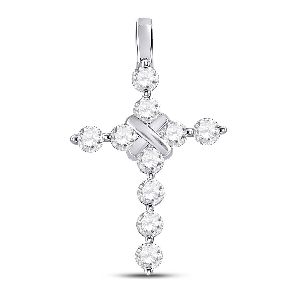 REF-76W5K ---- Womens Round Diamond Bound Cross Pendant 1 Cttw 14kt White Gold