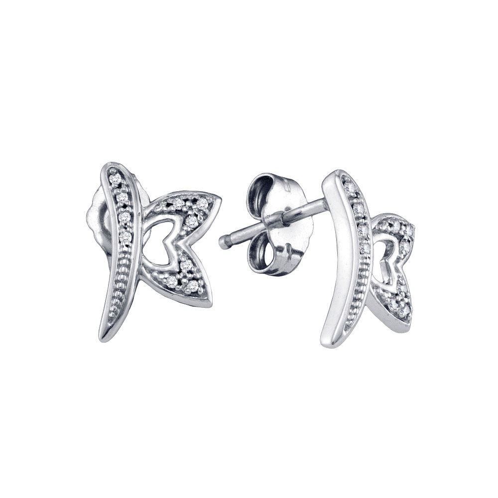 REF-9R5X ---- Womens Round Diamond Butterfly Bug Earrings 1/20 Cttw 10kt White Gold