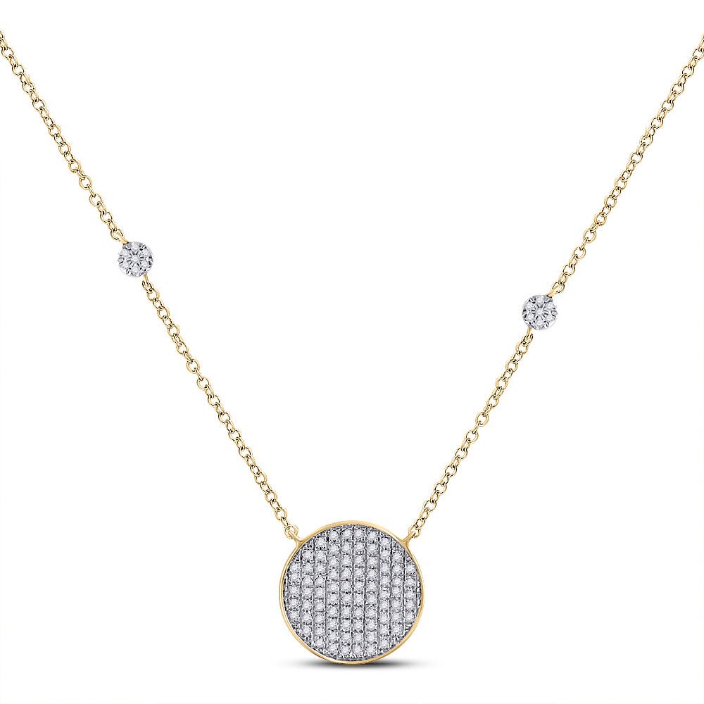 REF-27N9F ---- Womens Round Diamond Circle Cluster Necklace 1/4 Cttw 10kt Yellow Gold