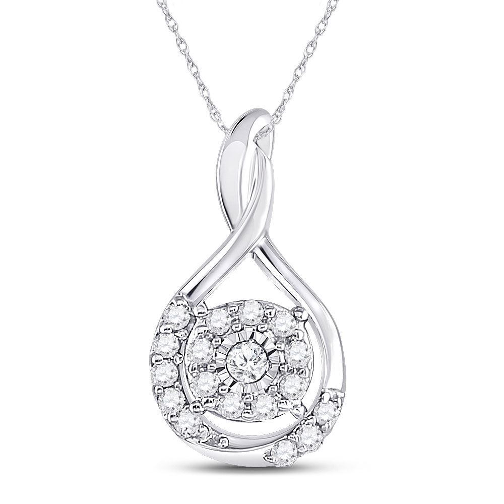 REF-7F5W ---- Womens Round Diamond Cluster Pendant 1/10 Cttw 10kt White Gold