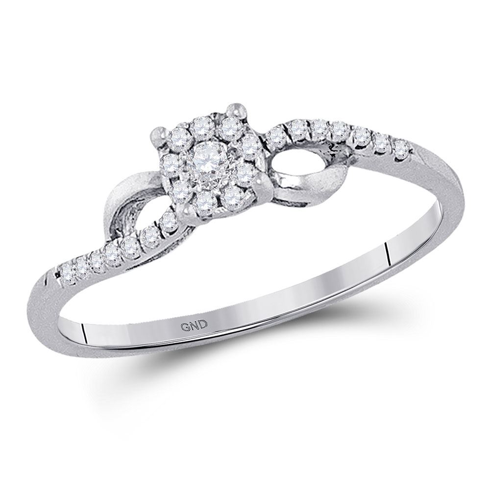 10kt White Gold Womens Round Diamond Cluster Promise Ring 1/10 CttwItem Number: GND-92614Gemstone Details1/10 Carats total weight --- .02 carat center solitaire