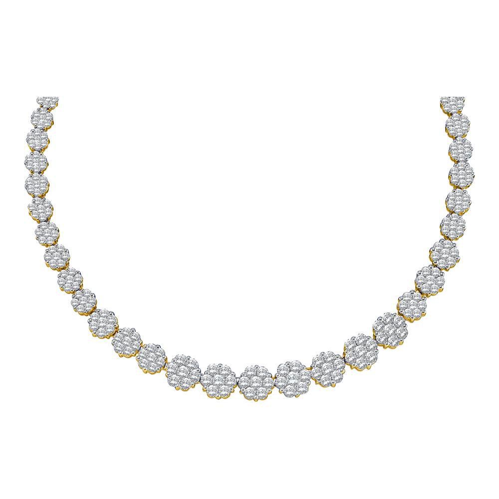 14kt Yellow Gold Womens Round Diamond Cocktail Flower Cluster Necklace 14 CttwItem Number: GND-21435Gemstone Details14 Carats total weight