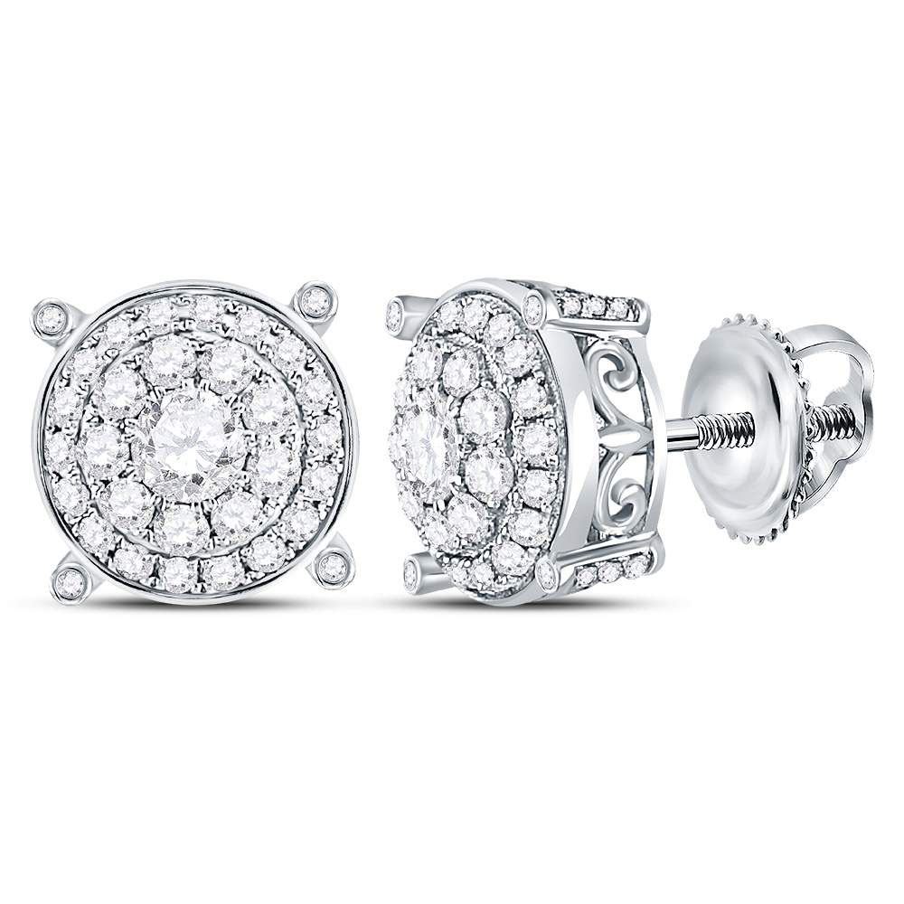 REF-77M5H ---- Womens Round Diamond Concentric Circle Cluster Earrings 1 Cttw 14kt White Gold