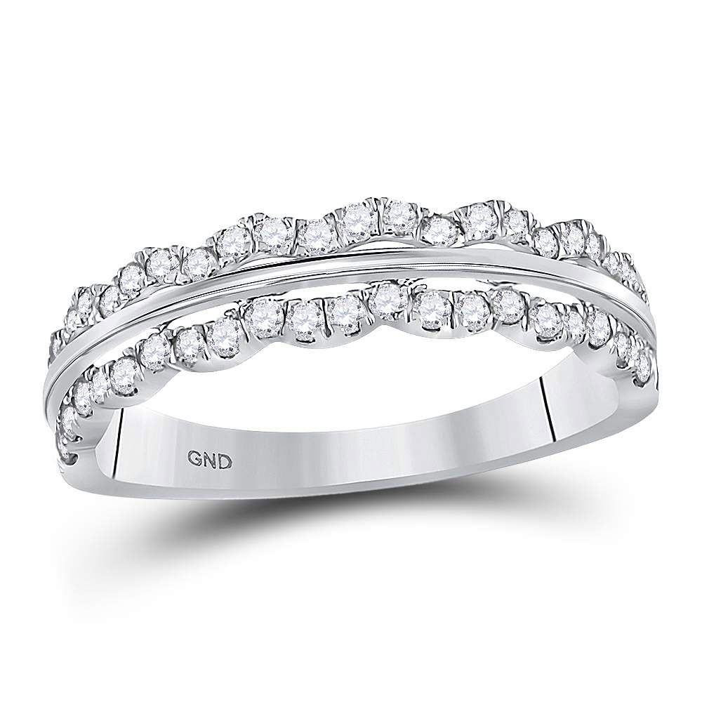 REF-30Y5N ---- Womens Round Diamond Contoured Symmetrical Band Ring 1/2 Cttw 14kt White Gold