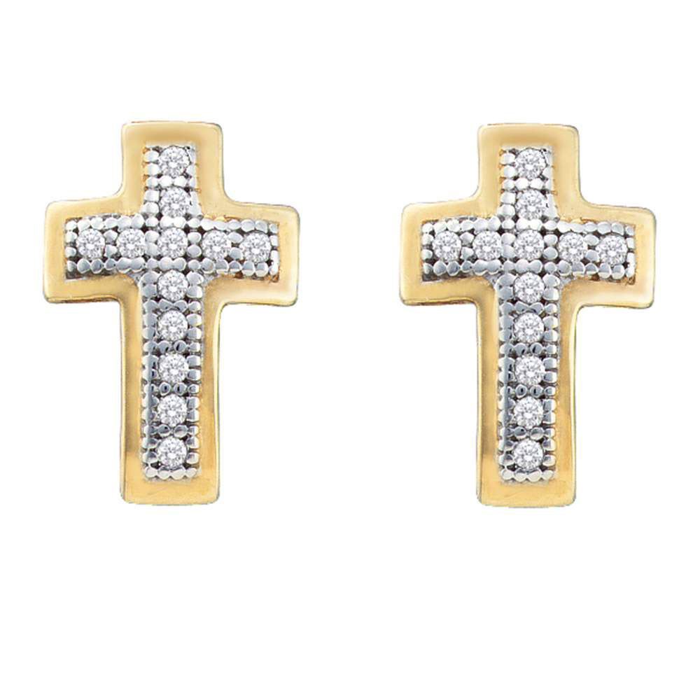 10kt Yellow Gold Womens Round Diamond Cross Earrings 1/10 Cttw