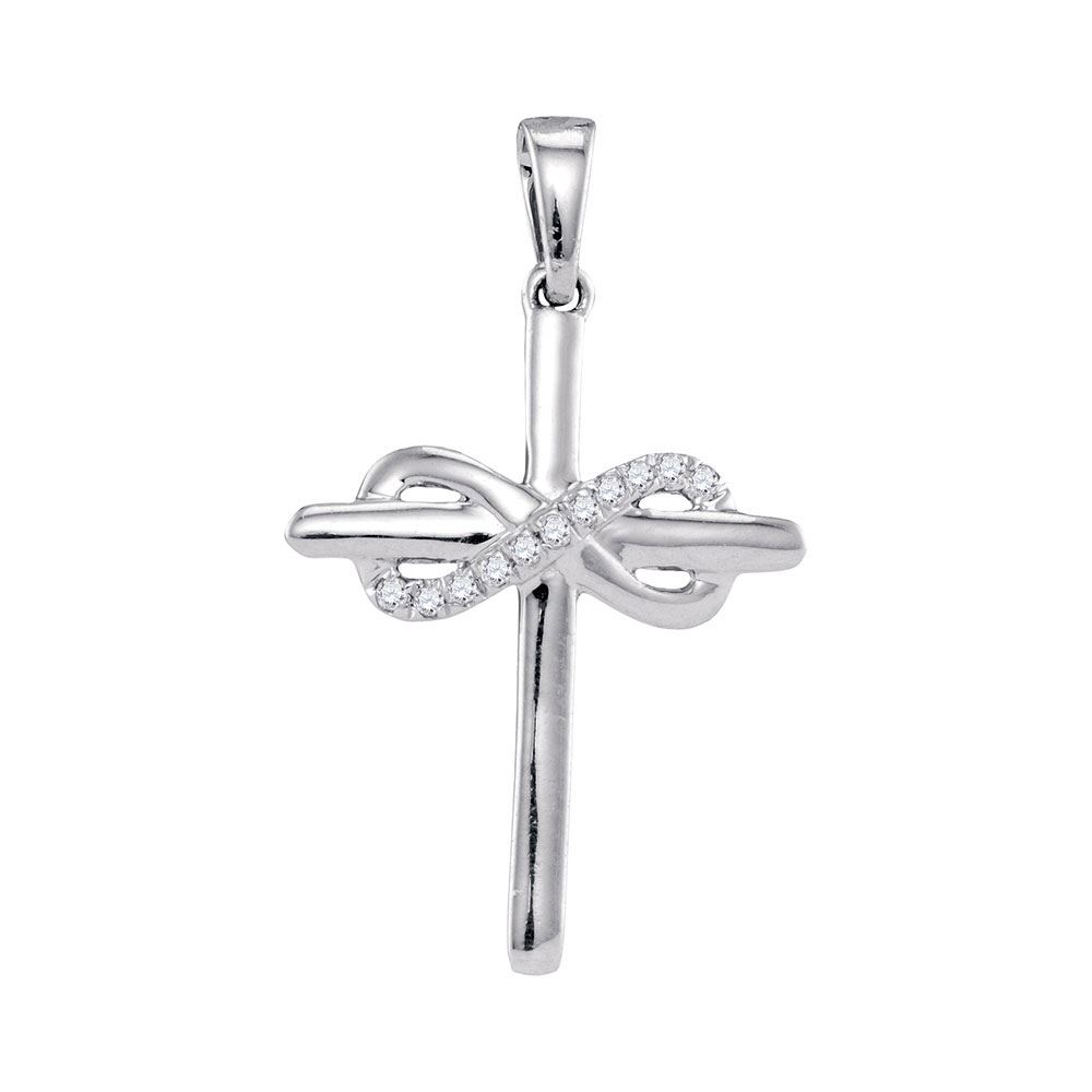 10kt White Gold Womens Round Diamond Cross Infinity Pendant 1/20 CttwItem Number: GND54960Gemstone Details1/20 Carats total weight