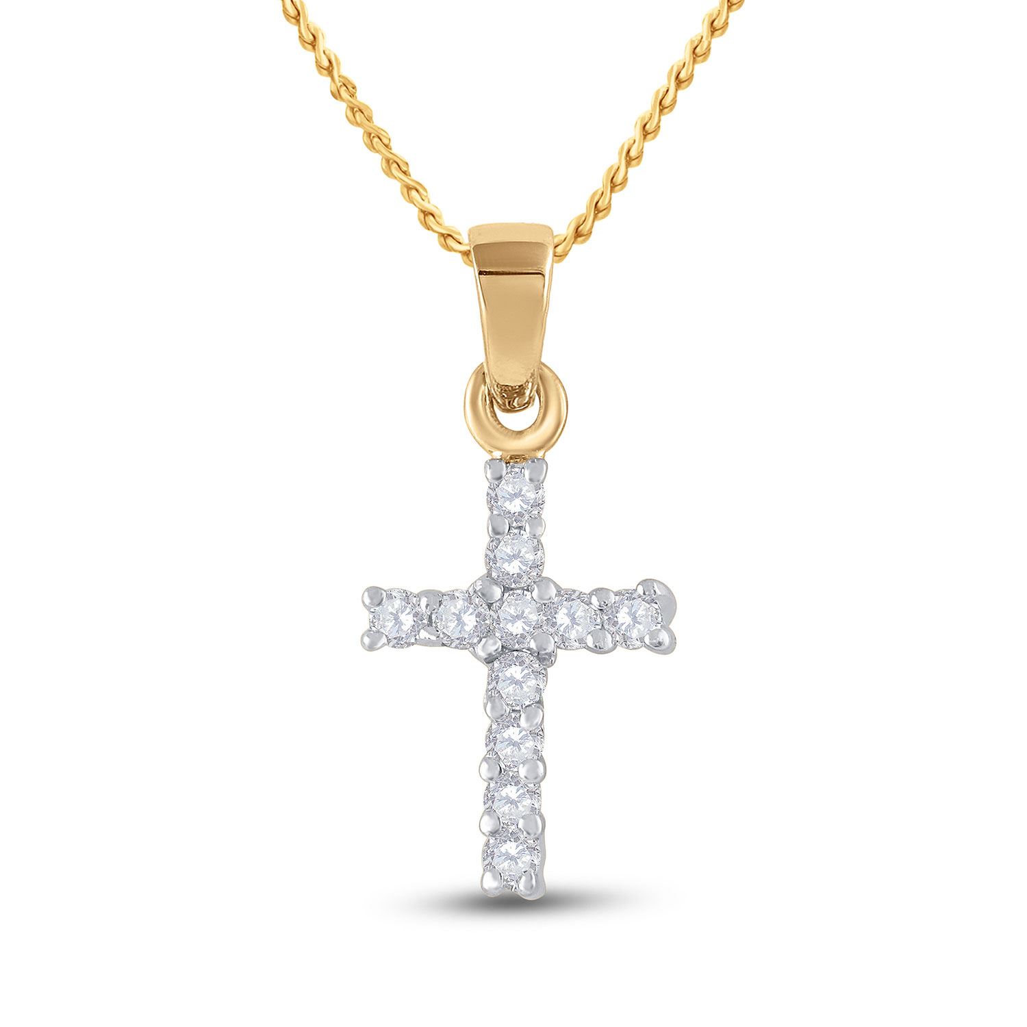 10kt Yellow Gold Womens Round Diamond Cross Pendant 1/4 Cttw