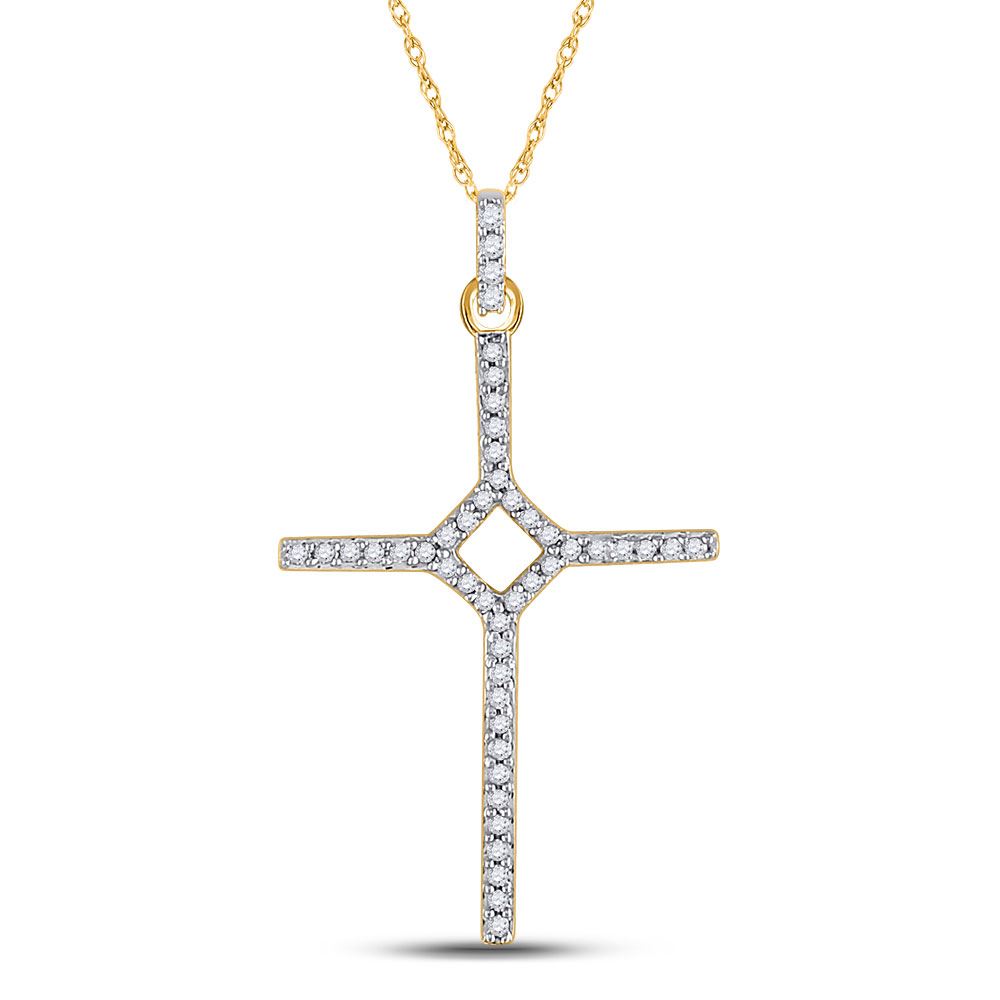 10kt Yellow Gold Womens Round Diamond Cross Pendant 1/6 Cttw