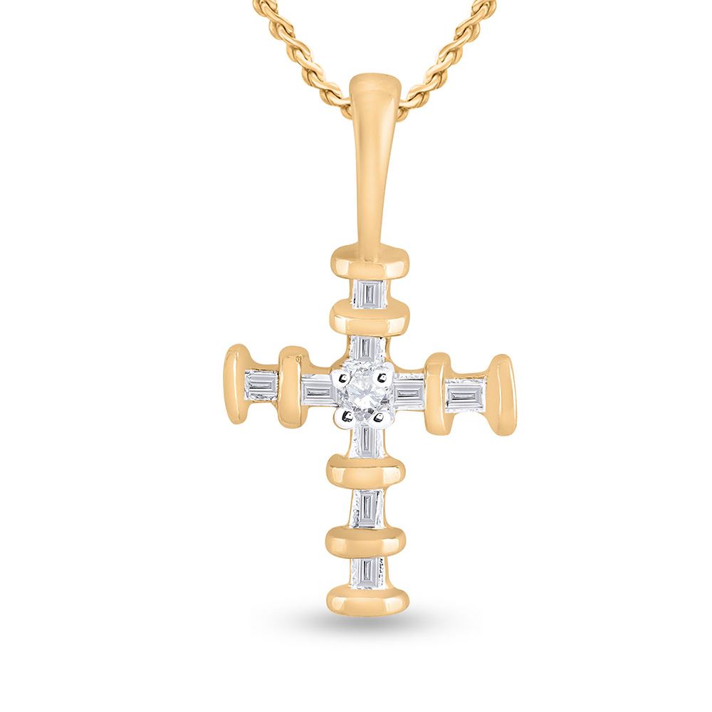 10kt Yellow Gold Womens Round Diamond Cross Pendant 1/8 Cttw