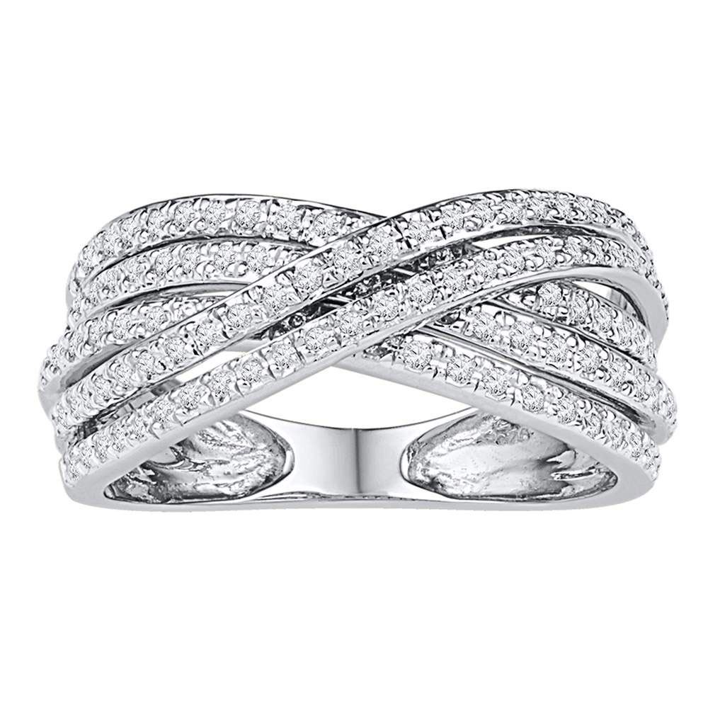 REF-30X5A ---- Womens Round Diamond Crossover Five Row Band Ring 5/8 Cttw 10kt White Gold