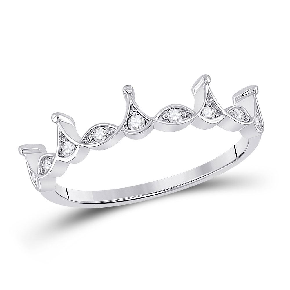 REF-17N5F ---- Womens Round Diamond Crown Stackable Band Ring 1/5 Cttw 10kt White Gold