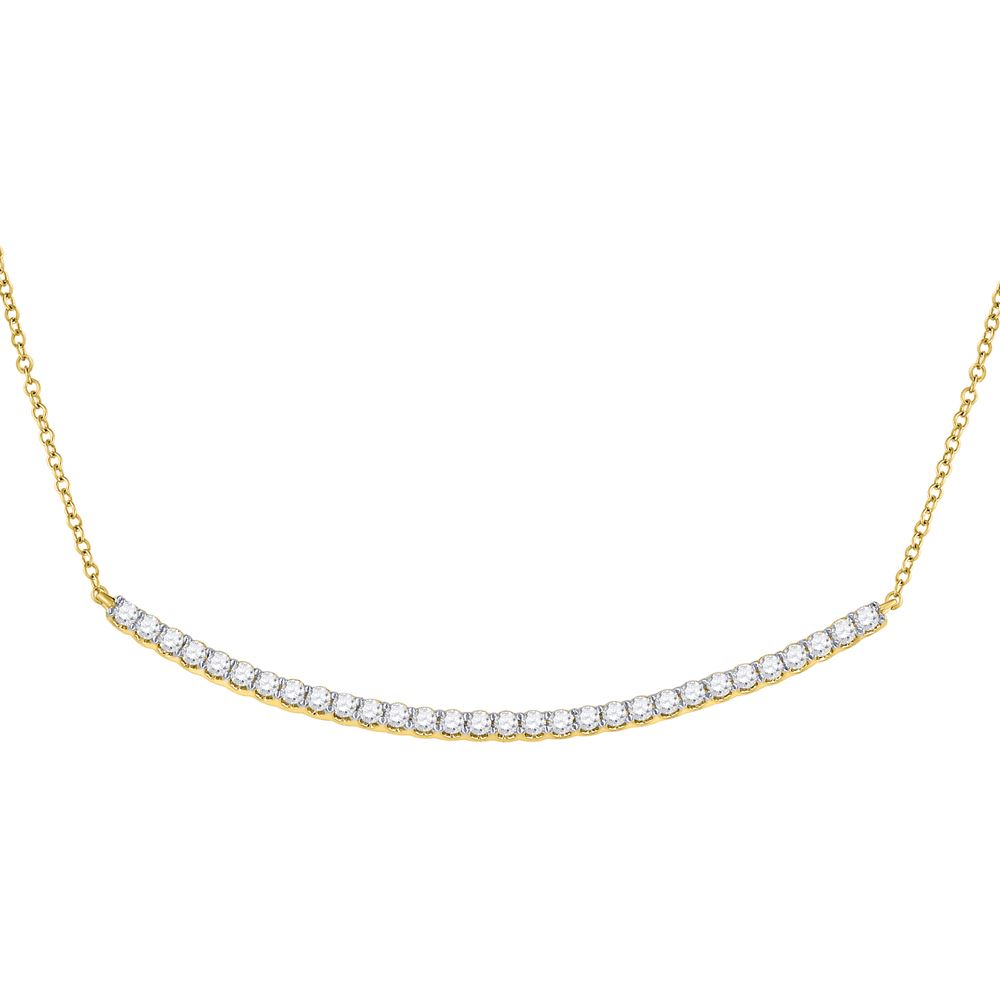 14kt Yellow Gold Womens Round Diamond Curved Bar Necklace 1 Cttw