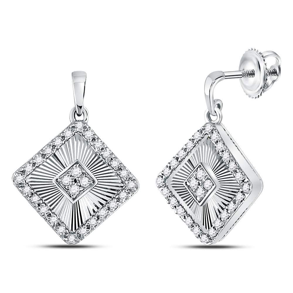 REF-27X9A ---- Womens Round Diamond Diagonal Square Dangle Earrings 1/5 Cttw 10kt White Gold