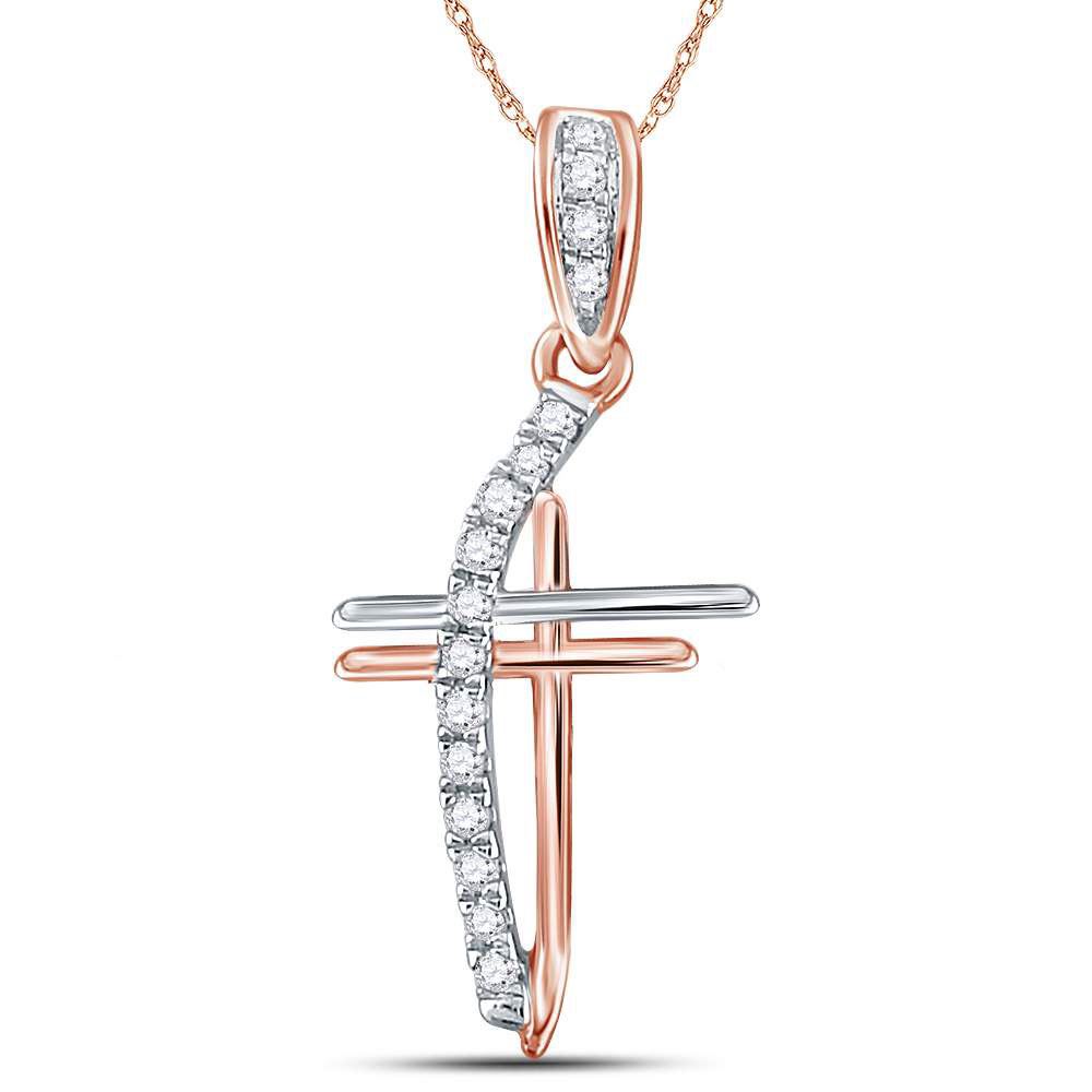 14kt Rose Gold Womens Round Diamond Double Cross Pendant 1/10 CttwItem Number: GND1540446Gemstone Details1/10 Carats total weight