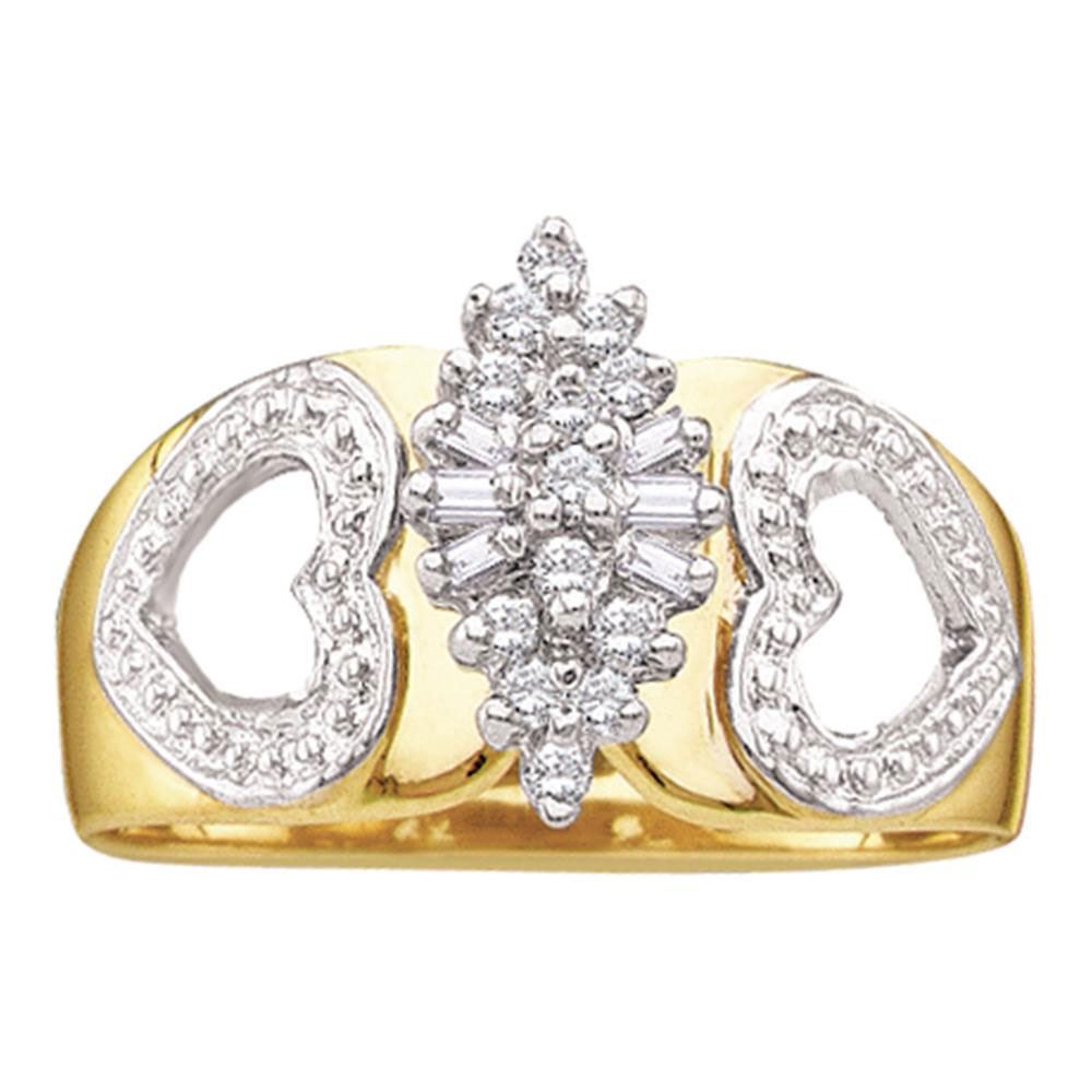 14kt Yellow Gold Womens Round Diamond Double Heart Cluster Ring 1/8 Cttw