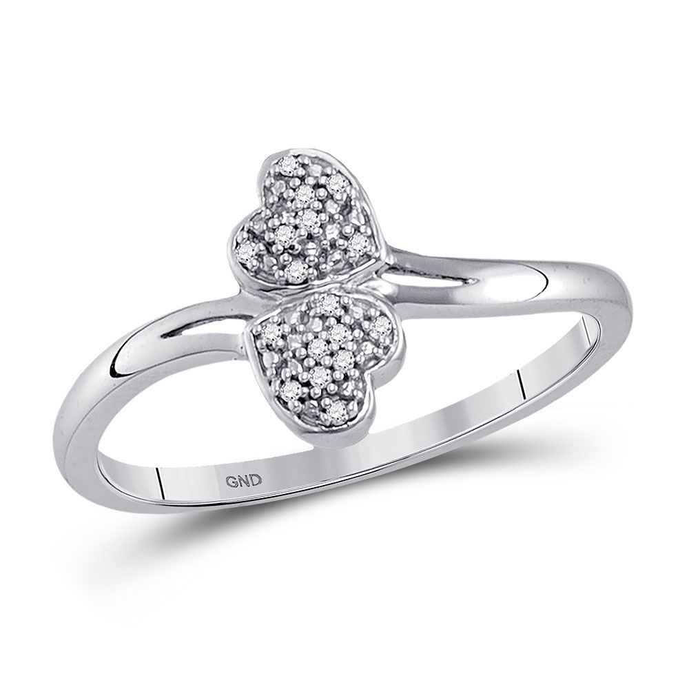 REF-6W5K ---- Womens Round Diamond Double Heart Ring 1/20 Cttw 10kt Yellow Gold