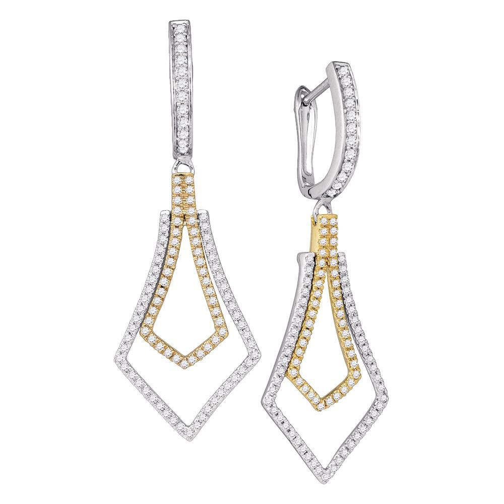 14kt Two-tone Gold Womens Round Diamond Flared Dangle Earrings 3/4 Cttw