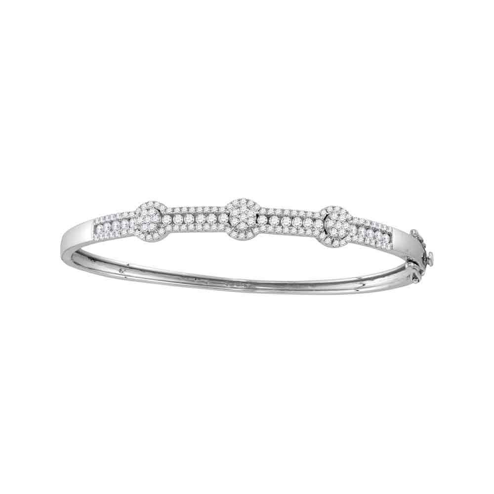 REF-148M9H ---- Womens Round Diamond Flower Cluster Bangle Bracelet 1-3/4 Cttw 14kt White Gold