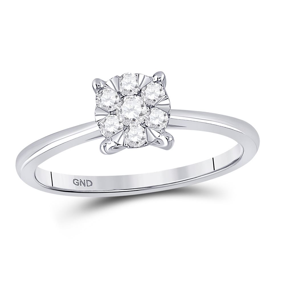 10kt White Gold Womens Round Diamond Flower Cluster Ring 1/4 Cttw