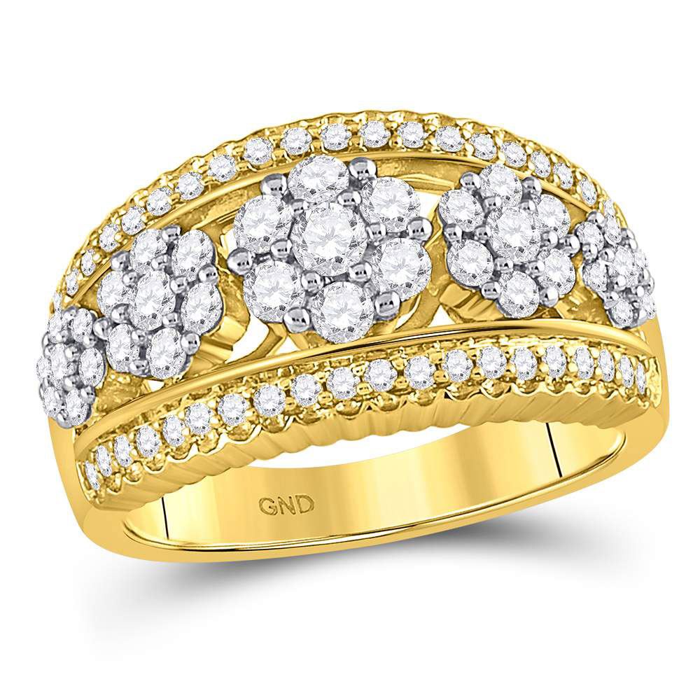 10kt Yellow Gold Womens Round Diamond Flower Cluster Ring 1 Cttw