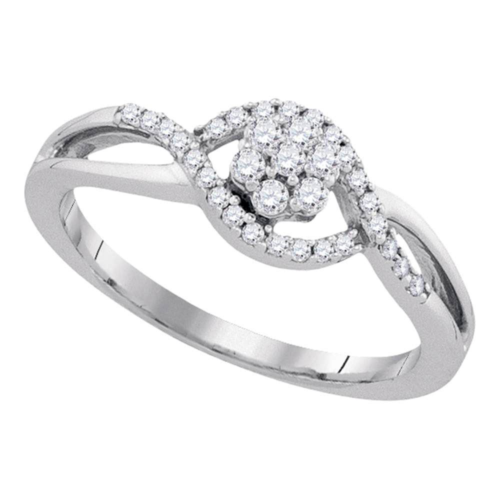 REF-21R9X ---- Womens Round Diamond Flower Cluster Twist Swirl Ring 1/4 Cttw 10kt White Gold