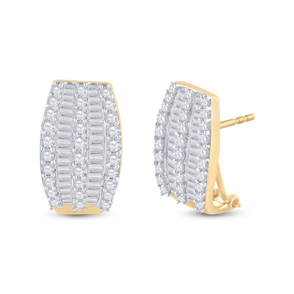 REF-52R9X ---- Womens Round Diamond French-Clip Hoop Earrings 1 Cttw 14kt Yellow Gold