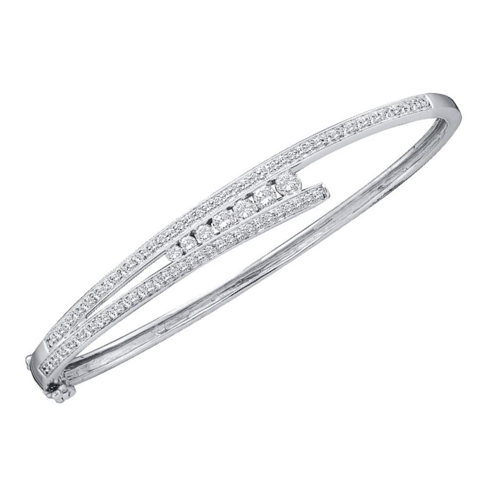 14kt White Gold Womens Round Diamond Graduated Bangle Bracelet 1 CttwItem Number: GND-40244Gemstone Details1 Carats total weight