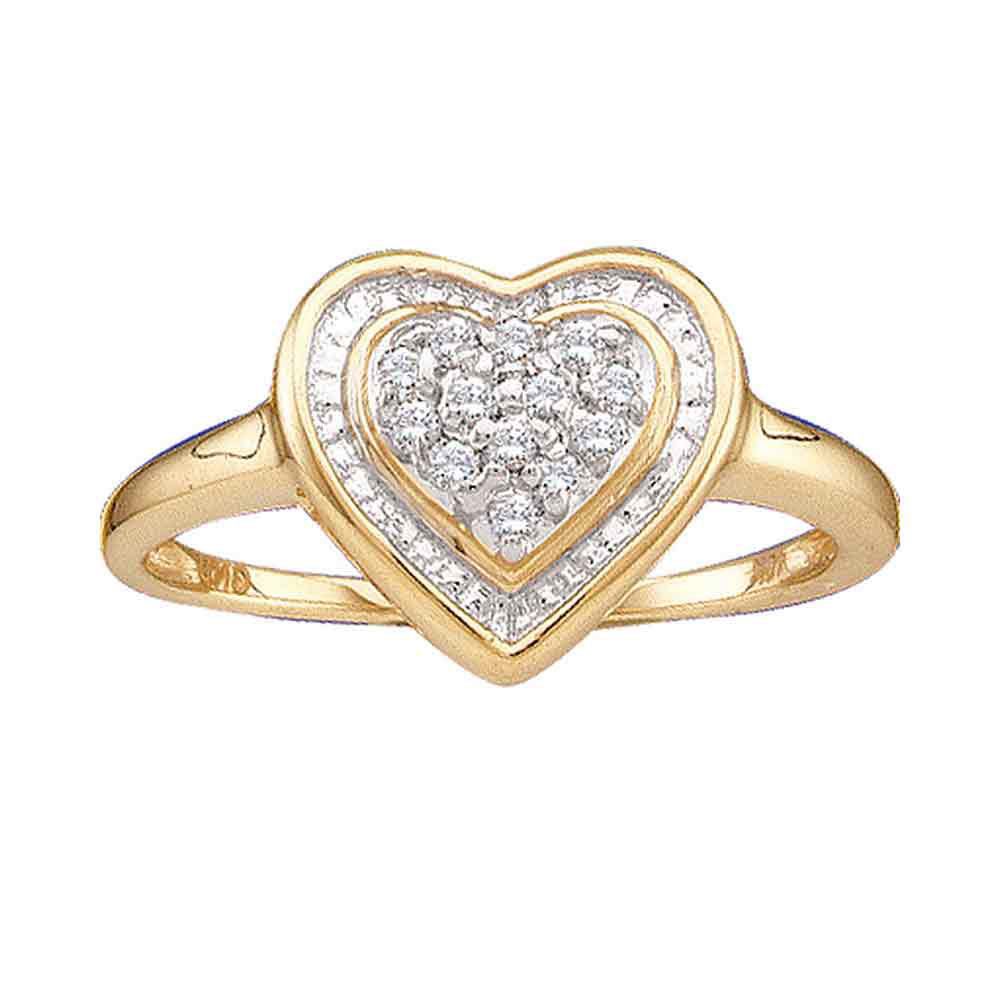 14kt Yellow Gold Womens Round Diamond Heart Frame Cluster Ring 1/10 Cttw