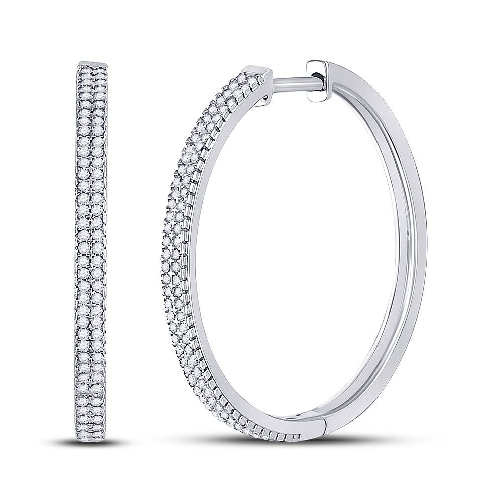 REF-32K5Y ---- Womens Round Diamond Hoop Earrings 1/2 Cttw 10kt White Gold