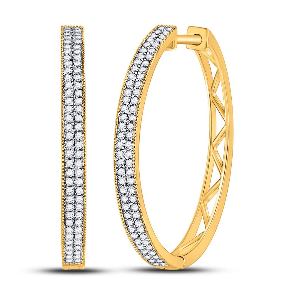REF-32Y5N ---- Womens Round Diamond Hoop Earrings 1/2 Cttw 10kt Yellow Gold