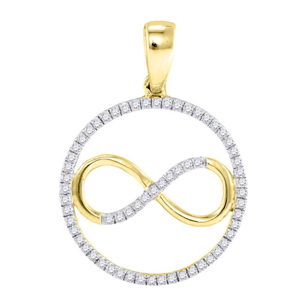 10kt Yellow Gold Womens Round Diamond Infinity Circle Pendant 1/4 Cttw