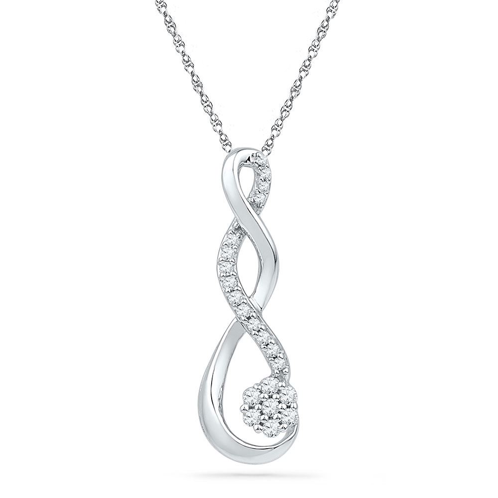 REF-13W9K ---- Womens Round Diamond Infinity Cluster Pendant 1/6 Cttw 10kt White Gold