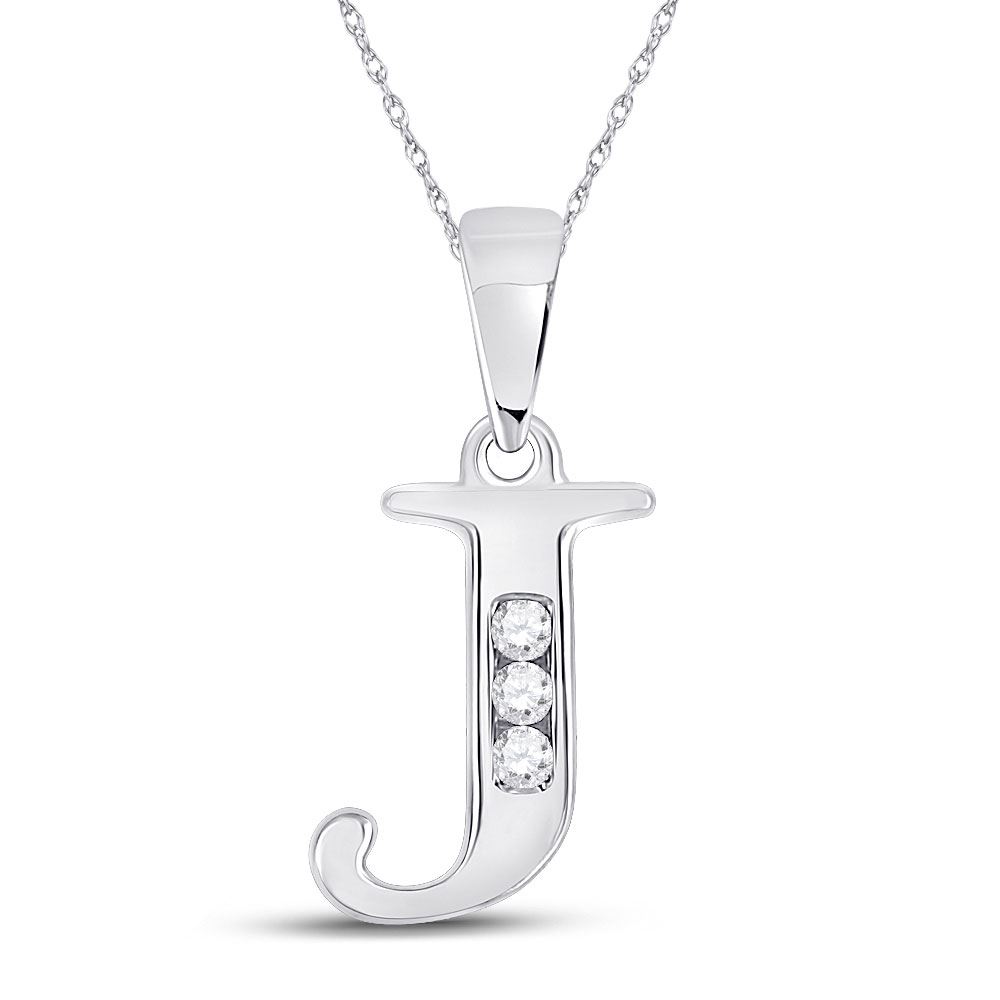 REF-6H5R ---- Womens Round Diamond J Initial Letter Pendant 1/20 Cttw 10kt White Gold