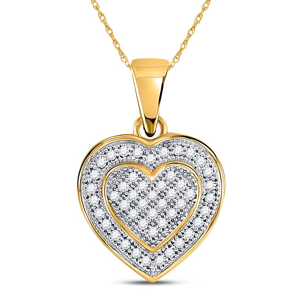 10kt Yellow Gold Womens Round Diamond Layered Heart Cluster Pendant 1/6 Cttw